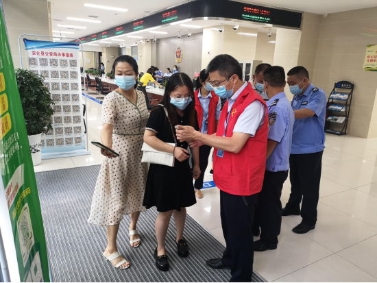安化县行政审批服务局党组书记、局长担任志愿者悉心指导来访群众扫码登记