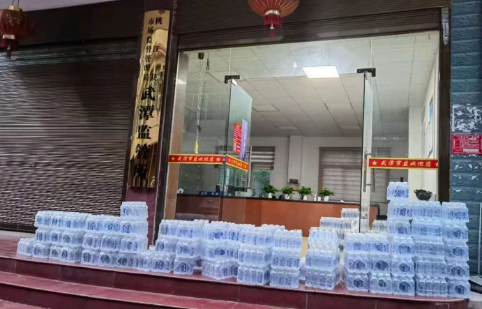 8月7日,桃江县武潭镇一民营企业负责人来到县市场监督管理局武潭监管所,对奋战在疫情防控一线的工作人员表示感谢,同时捐赠1000件矿泉水,用来支持全镇的抗疫工作。