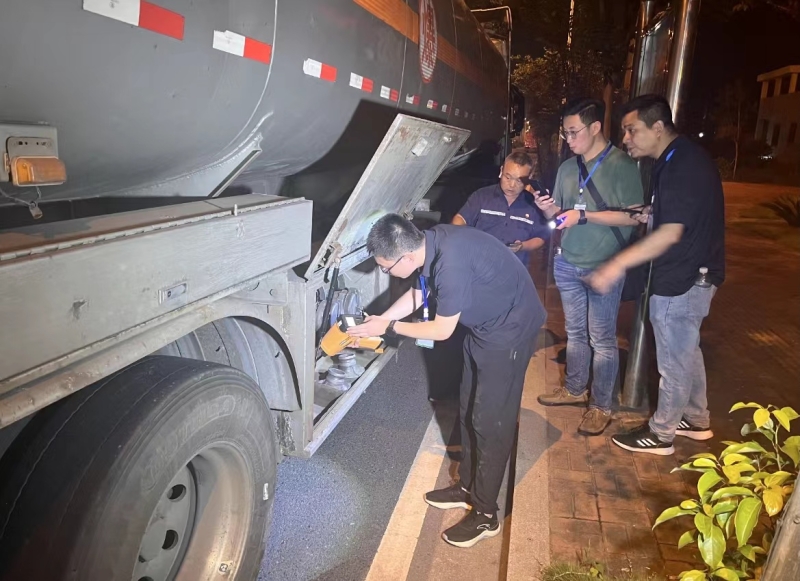 6月30日晚,省第四生态环境保护督察组组织生态环境、交通警察等部门执法人员,以“四不两直”的方式来到资阳区,按照国家相关标准,对过往的汽油油罐车开展油品运输油气排放专项执法检查。