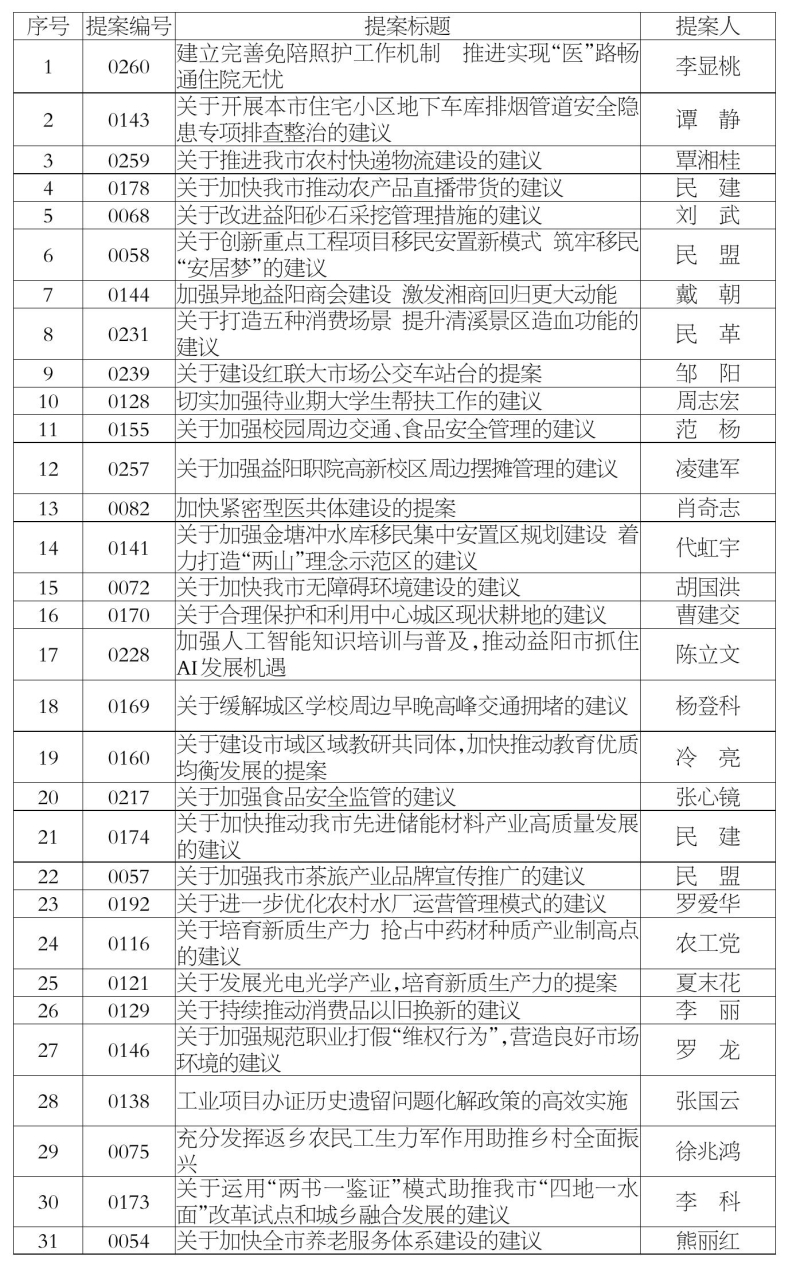 益阳市政协七届四次会议以来优秀提案名单