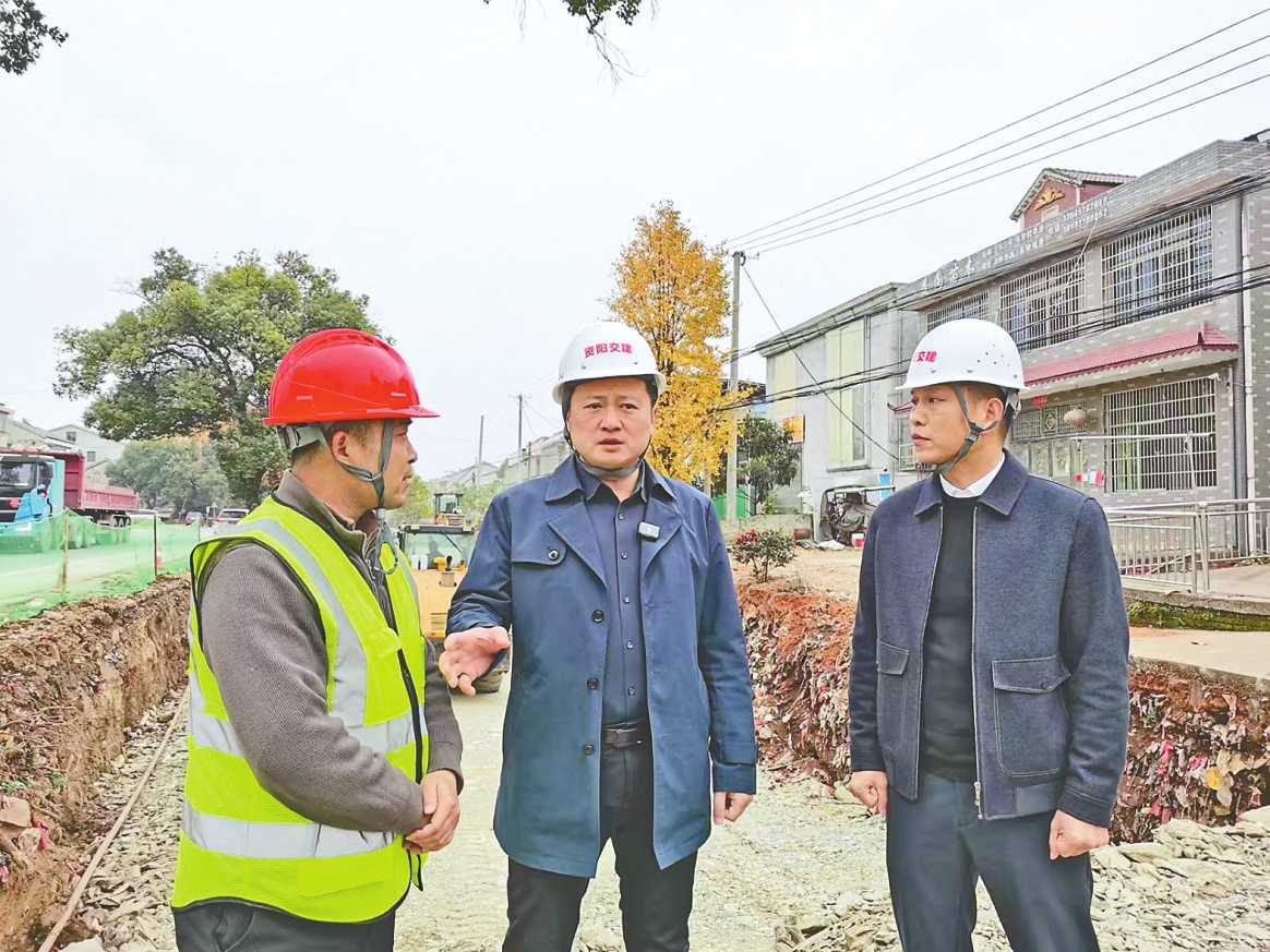 王晓强(左二)在资阳区交通建设现场调研。江怀远摄