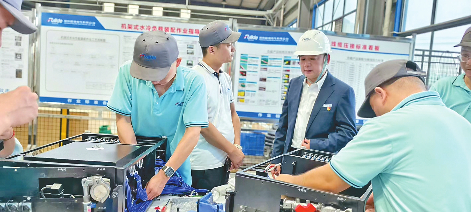 这些创新成果的背后,是党建的坚强引领。2009年入党的李稳根,始终把党建工作当作企业发展的“根”与“魂”。2022年,福德电气成立党委,在广东、株洲、浙江等地的分公司及产业链上下游企业组建联合党支部,实现15家企业党组织全覆盖。公司创新实施“红领工匠”计划:把技术骨干培养成党员,把党员培养成研发带头人。25名技术骨干通过计划成为党员或入党积极分子,10名党员成长为研发组长。在党员示范岗的带动下,技术团队先后攻克5项“卡脖子”技术,申请专利40件,由党员骨干牵头起草的《电力电子设备能效测试方法》,还填补了国内相关行业标准的空白。