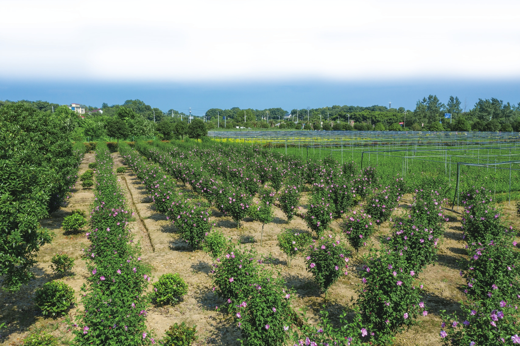 资阳区盘活利用闲地、荒地发展木槿产业,目前全区推广木槿种植面积达7000亩。(图片由资阳区农业农村局提供)