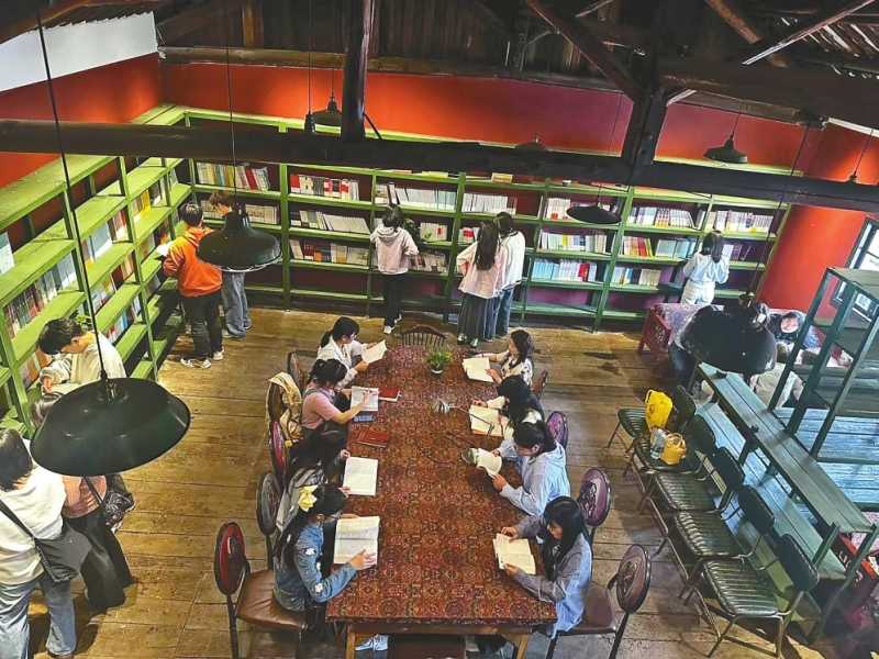 时光庭院书屋以“文化综合体”模式激活基层活力。这家书屋由文学文艺爱好者共同创建,引入社会力量运营,地处东坪镇黄沙坪古茶市,面朝资水、背靠老街。在400余平方米的空间里,不仅藏有10000余册书籍,还融入了茶咖文化、书法美术、摄影艺术和心理咨询等多元业态。截至目前,已累计举办60余场文化活动,其中“艺术疗愈沙龙”将心理咨询与艺术创作结合,成为受欢迎的交流平台。该运营模式下,时光庭院书屋通过特色化打造、创新化管理、多元化使用,使得日入馆人数从不足10人增至40余人,图书流通率提升35%,成功地从静态文化设施转变为动态文化枢纽。