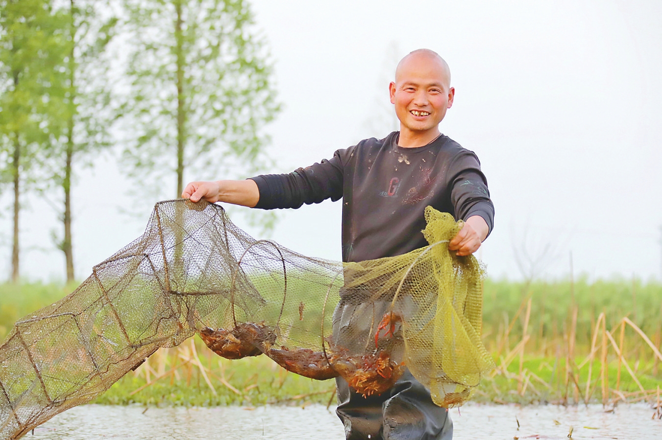 虾农捕捞小龙虾。(南县县委宣传部供图)