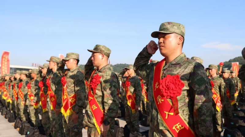 新兵身着崭新军装,胸戴大红花,身姿挺拔,整齐肃立。在欢送仪式上,相关领导为新兵代表佩戴“参军光荣”绶带,新兵代表、新兵家长代表分别发言。“穿上这身迷彩,我深知肩上承载的是沉甸甸的责任与使命,我早已做好充分准备,将以最饱满的热情、最昂扬的斗志、最坚定的信念,迎接每一个挑战,克服每一个困难。”新兵代表胡雨航说。随后,全体新兵在新兵代表的带领下,高举右拳、庄严宣誓,表达他们忠于祖国、忠于人民的赤子之心和献身国防、建功立业的坚定信念。