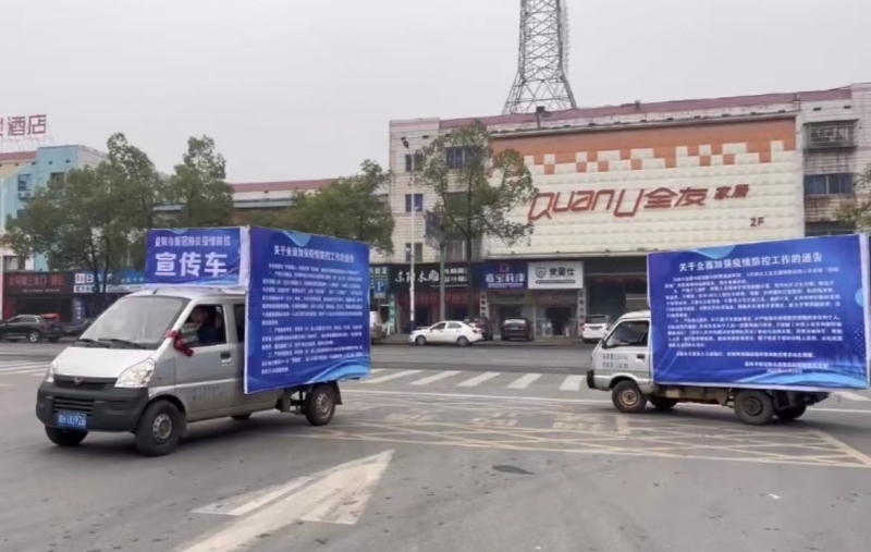 坚持非必要不跨省出行,严禁前往高风险区……11月28日8时30分,在中心城区康富路和滨江路交叉处,10台流动宣传车依次驶过,车身上张贴着醒目的防疫标语,广播里播放着疫情防控知识和要求。