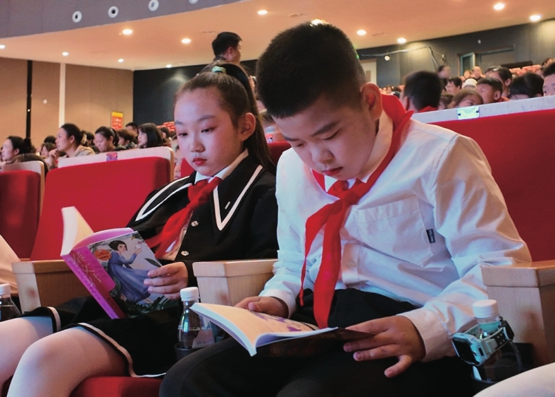 孩子们在讲座间隙阅读书籍。陈徐文倩摄