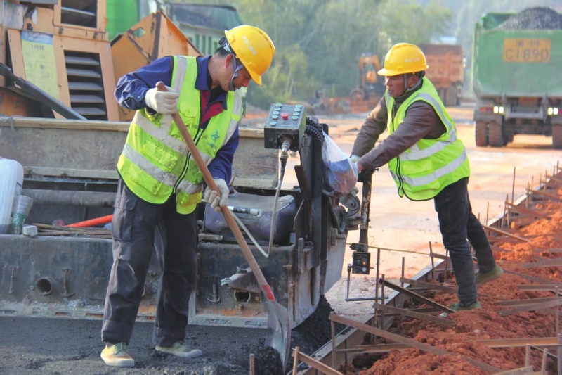虎山路水稳、沥青摊铺现场。谢辉摄
