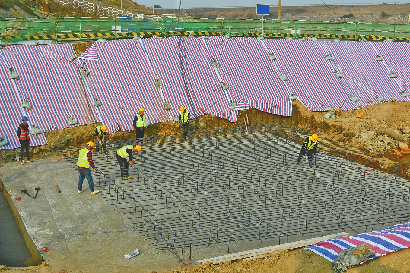 12月10日,在资江赫山区兰溪镇羊角村段油麻潭电排拆除重建工程施工现场,工人们正抢抓晴好天气进行消力池底板钢筋板扎施工。中国水利水电第八工程局益阳工区工区长姚柳介绍,该工程是湖南省洞庭湖区重点垸堤防加固工程的一部分,自11月1日动工以来,施工方倒排工期推进施工,预计明年3月可完工。