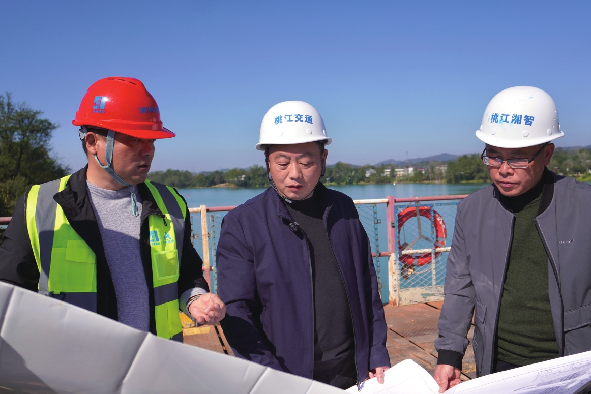 “交通是发展的命脉,更是民生的期盼,我必须把这份责任扛在肩上。”胡鹤鸣说。大栗港资江大桥路线全长1.276公里,立项批复总投资1.08亿元,建设工期30个月,是桃江县交通建设的重点民生工程。资水将大栗港镇一分为二,南北两岸交通运输只能靠水运。“我们去河对面只有轮渡,碰到晚上停渡,要去医院或有什么急事都很不方便。”大栗港镇栗山河村村民詹显姣说。大桥建成后,连接大栗港镇牌形上村和大栗港社区,将彻底改变这一困境。