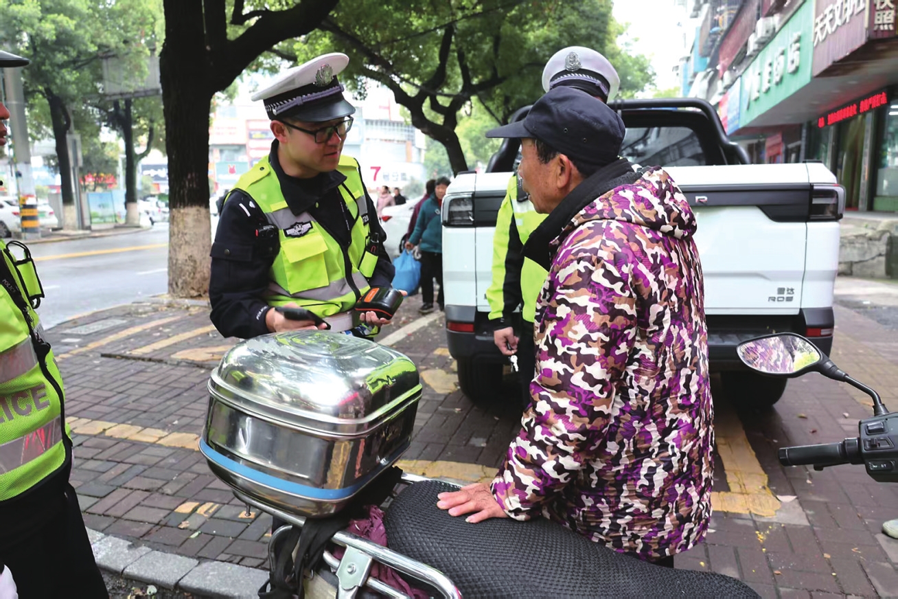 3月25日,市公安局交通管理支队资阳大队在辖区重点路段开展摩托车、电动自行车专项整治行动,重点查处无牌无证、不戴头盔、闯红灯、逆行、违规加装雨棚等突出违法行为。詹丽珊 摄