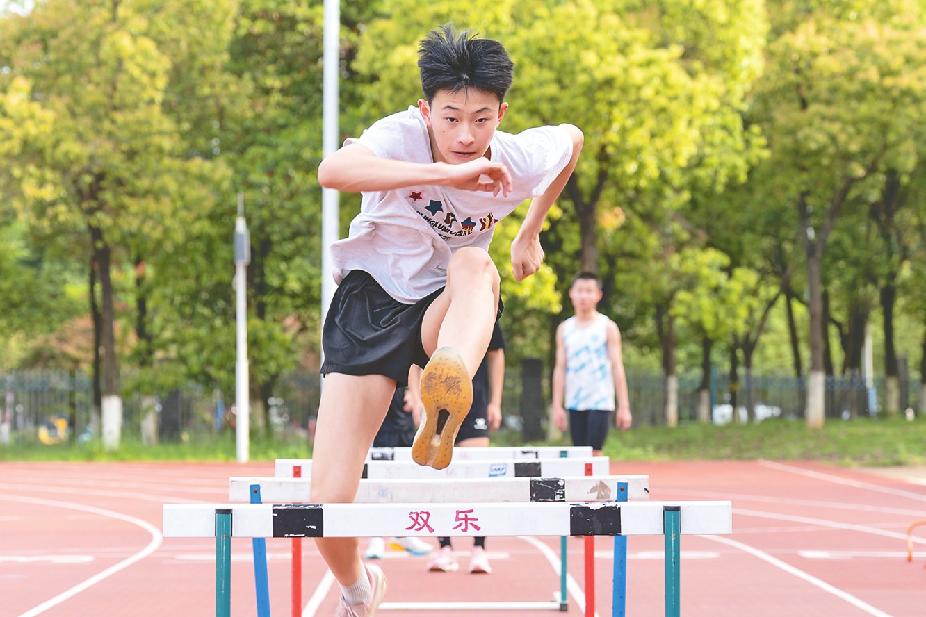 在益阳医学高等专科学校的田径场上,跨栏运动员如离弦之箭,奋力冲向终点;中长跑运动员匀速前进,反复打磨步伐细节,锤炼实战技巧。