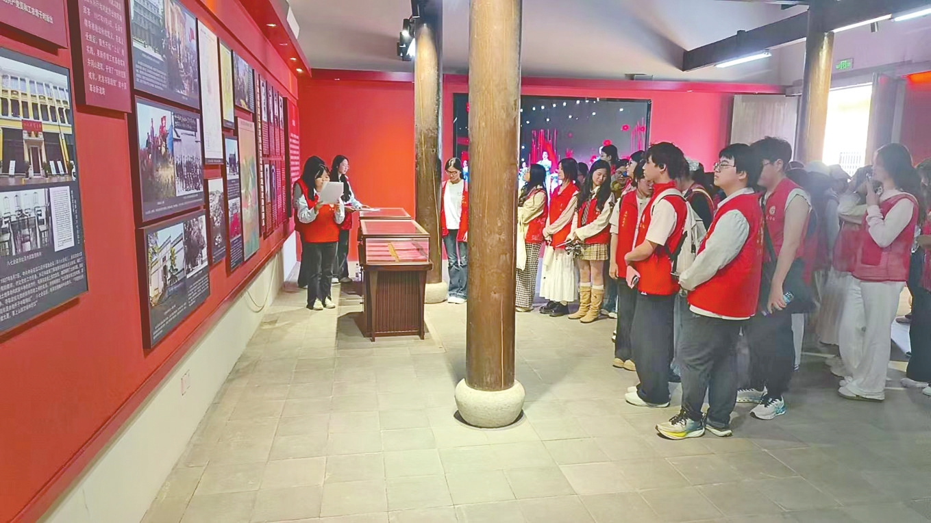 大学生志愿者走进陈列馆接受红色教育。陈浩军摄