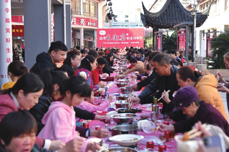 ——全省最美志愿服务村(社区)资阳区大码头街道临兴街社区见闻居民踊跃参加“长街宴”特色活动。(临兴街社区提供)