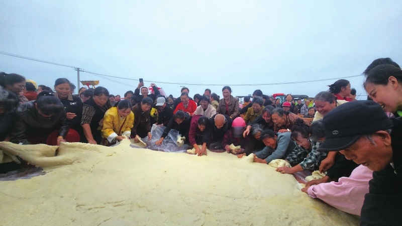 最热闹的是抢糍粑比赛,比赛规则是“谁抢谁得”。主持人宣布“开始”,话音刚落,众人一哄而上,300公斤热乎乎的糯米糍粑几分钟内一抢而光。