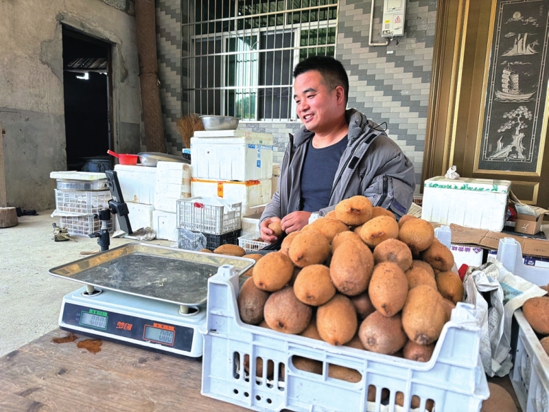 实打实的品质,终于让蒋文的猕猴桃在市场上站稳了脚跟。果子甜度高、果香浓,吃过的人都成了回头客。他学着拍果园视频发抖音、微信,线上订单慢慢多了。以前江苏水果店的老伙计们尝了样品,主动帮他代销;偶尔还有游客慕名来园里采摘。“今年线上就卖了400多单,占了总销量的三分之一。”蒋文笑得腼腆,“江苏的老朋友今年拿了两次货很快就卖光了,还催着我明年多留点。”