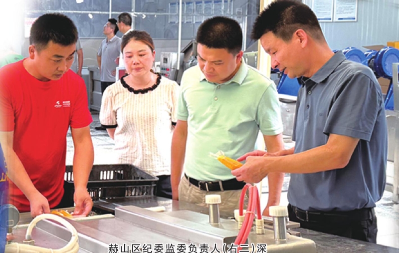 赫山区纪委监委负责人(右二)深入企业督导安全生产工作。