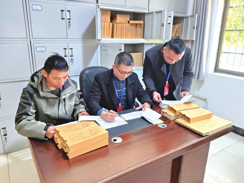 岳家桥镇纪委干部随机抽查镇财政所财务账目。