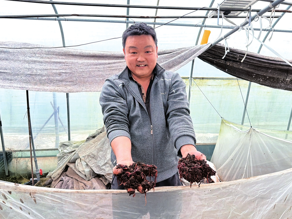 王建飞养殖的蚯蚓活力十足。 甘果摄