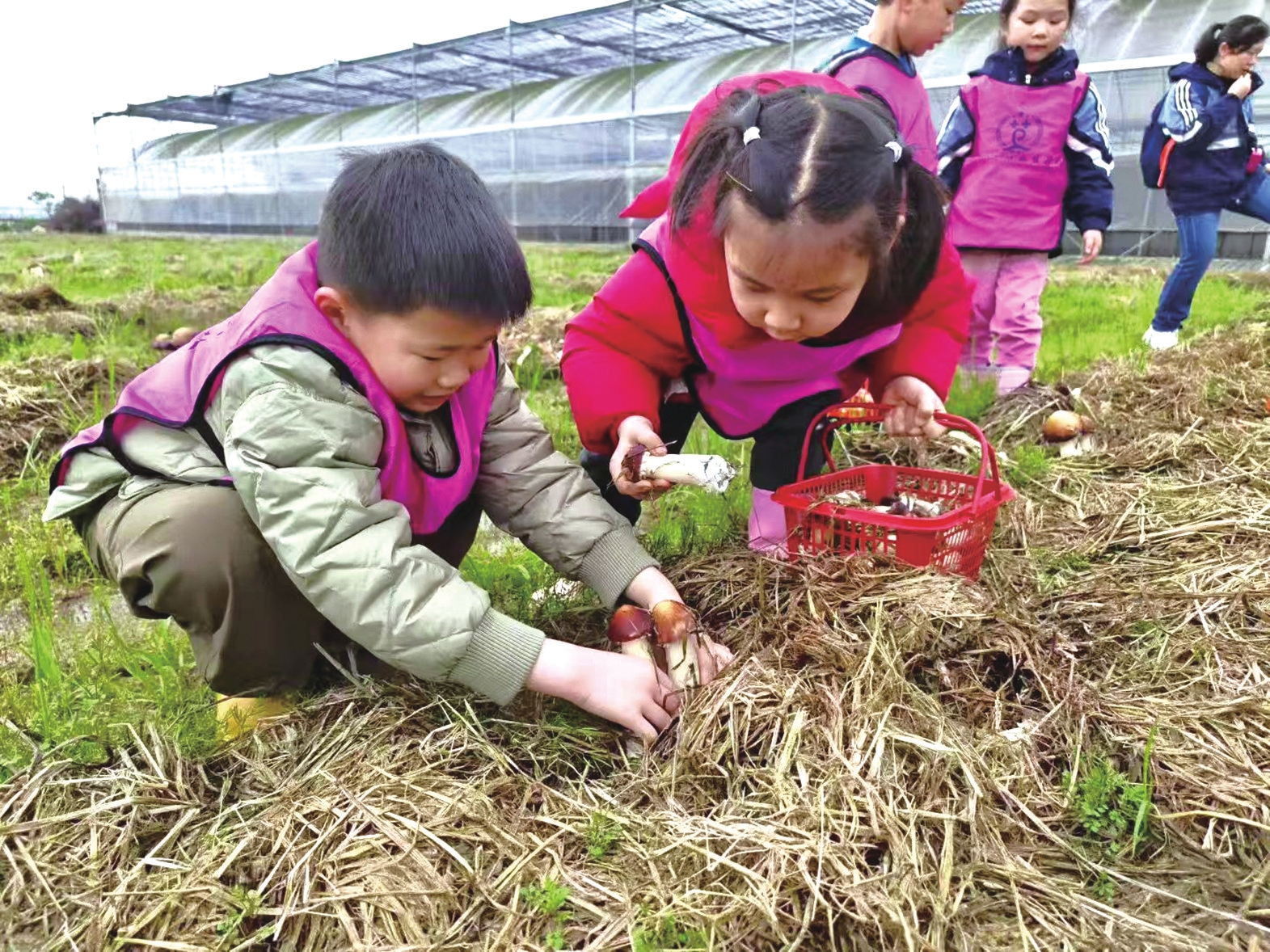 学生体验采摘赤松茸。陈徐文倩摄