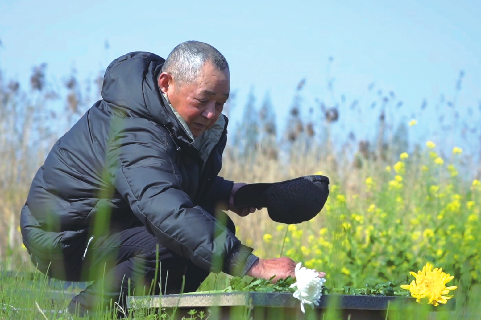村民送菊寄哀思。刘馨予摄