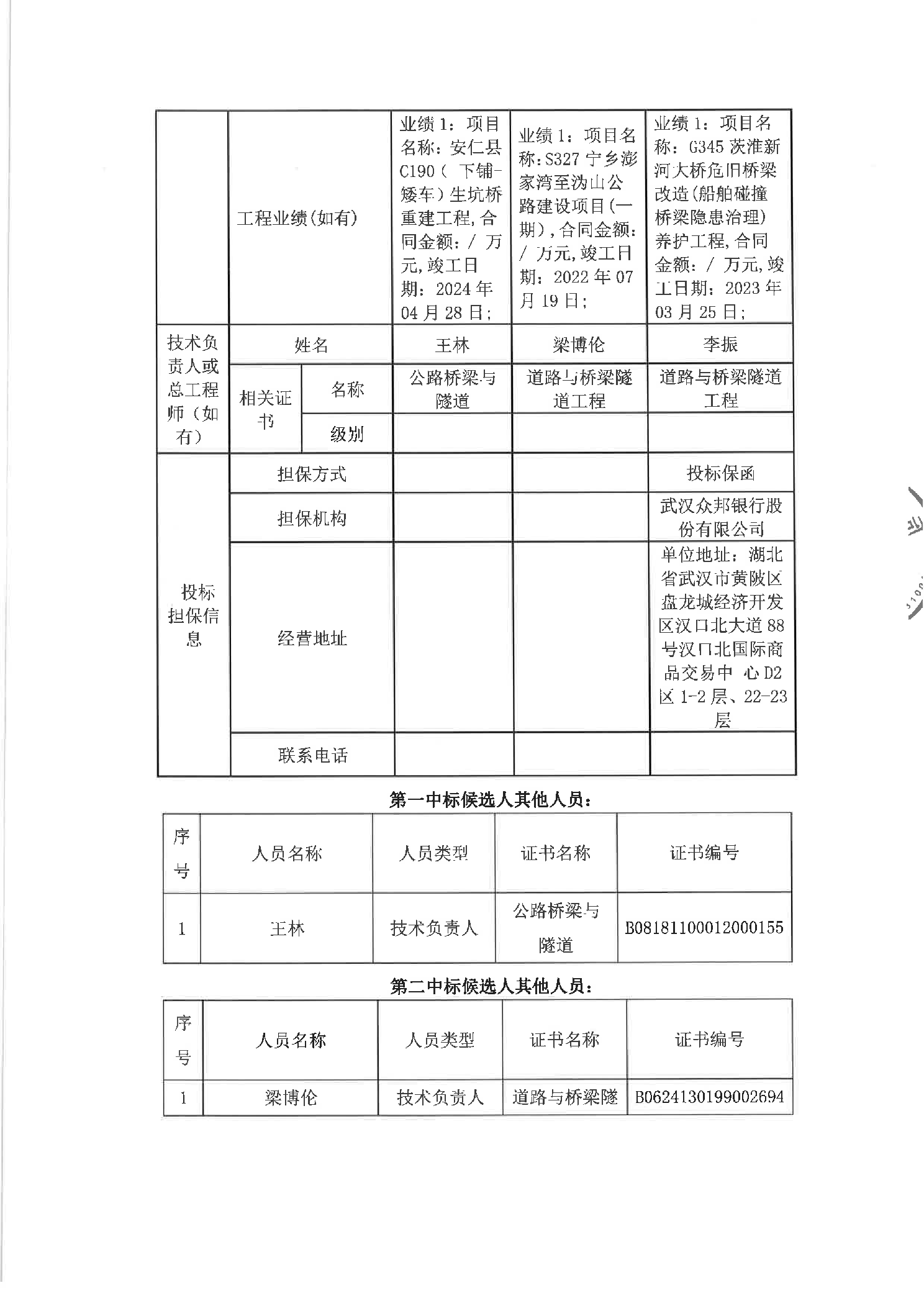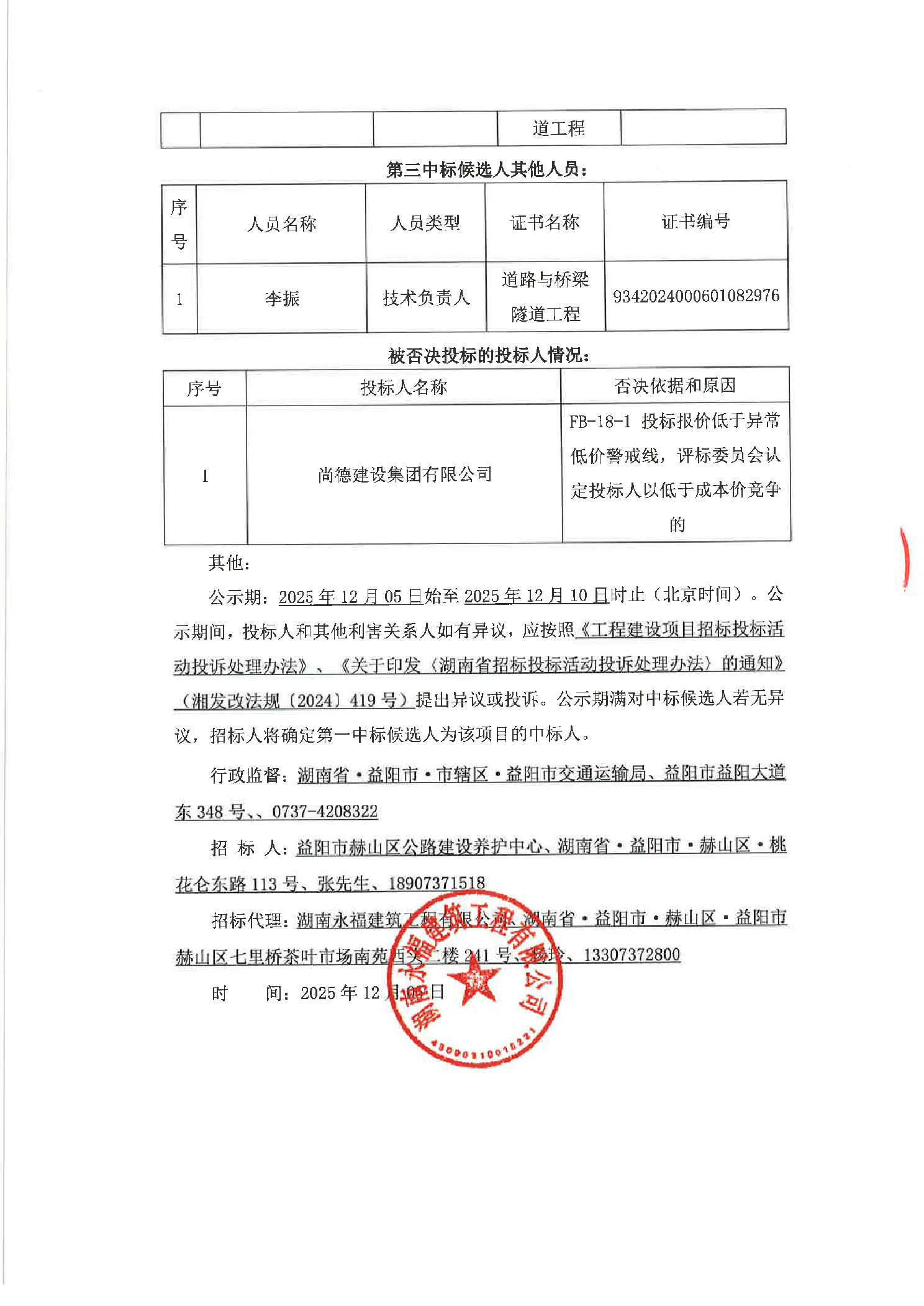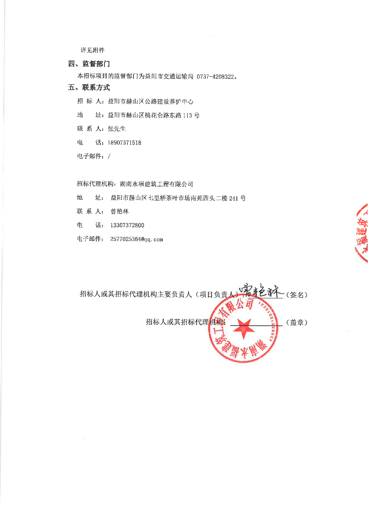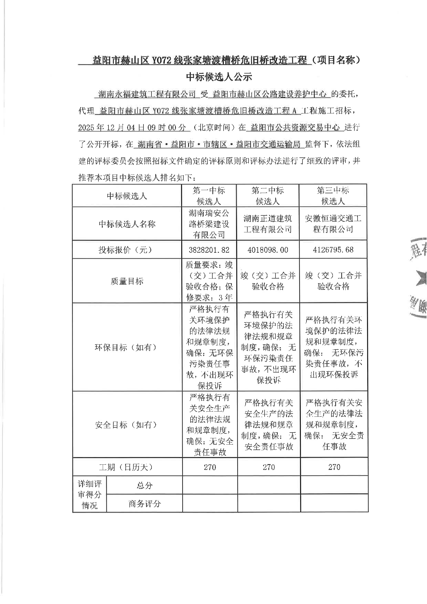 益阳市赫山区Y072线张家塘渡槽桥危旧桥改造工程中标候选人公示