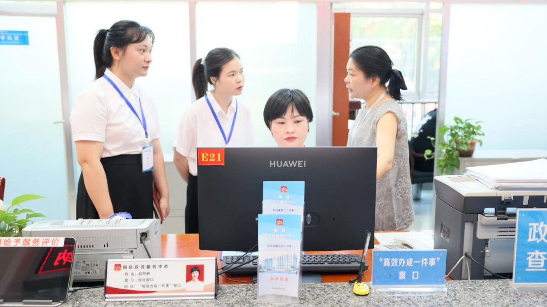南县纪委监委紧盯“高效办成一件事”落实情况,不定期深入政务服务中心开展“嵌入式”监督,推动优化办理流程,形成“网办优先、自助为辅、窗口兜底”的服务体系,让群众在办事中感受到方便快捷。图为驻县政府办纪检监察组工作人员在县政务服务中心了解相关情况。(南县纪委监委 汤佳怡 摄)