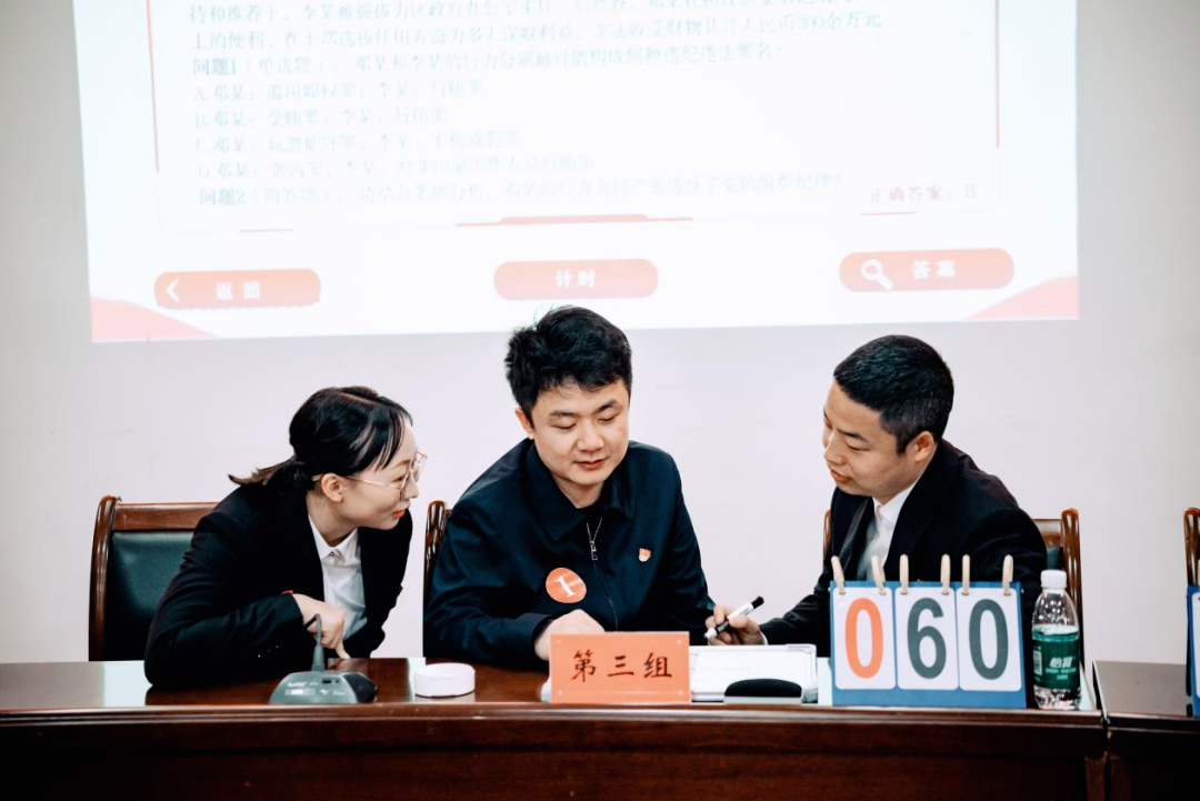 资阳区纪委监委以知识竞赛为抓手深化日常党性教育,以赛促学、以学促干,引导纪检监察干部在比学赶超中夯实党纪法规知识基础,将纪律意识内化于心、外化于行。图为知识竞赛小组讨论现场。(资阳区纪委监委供 徐子墨 摄)