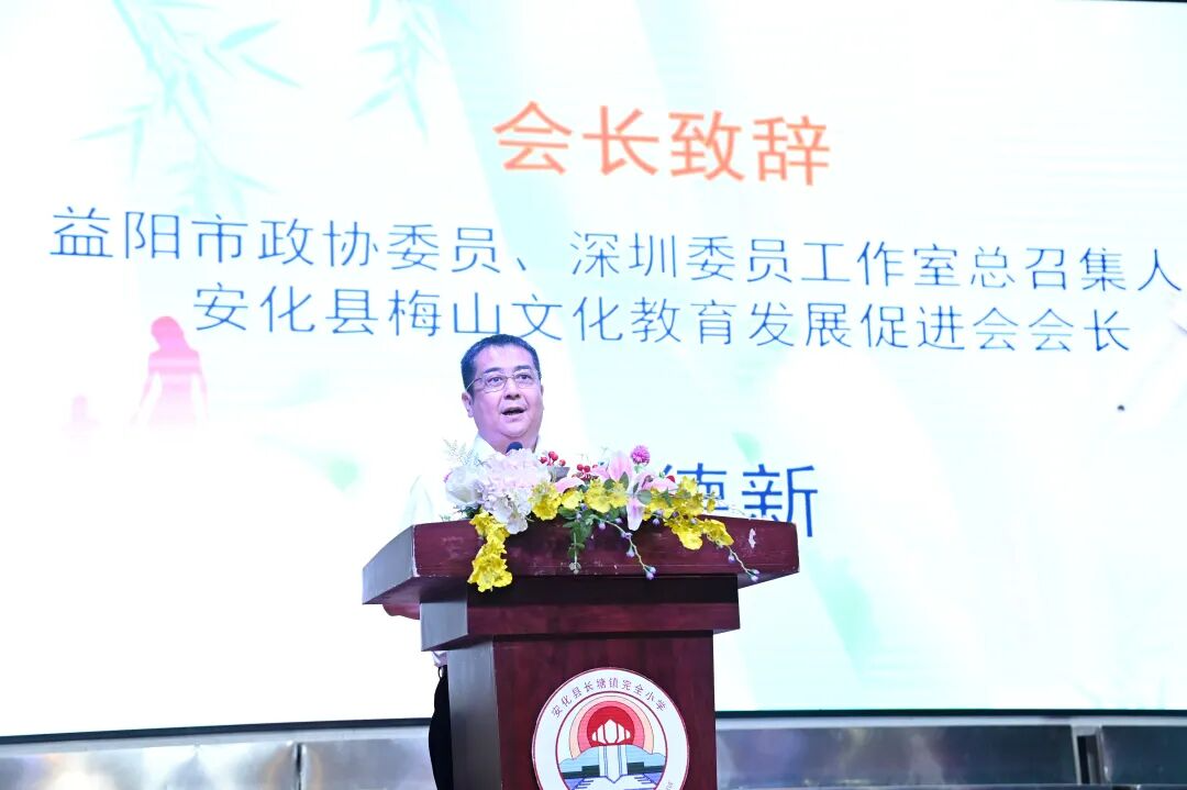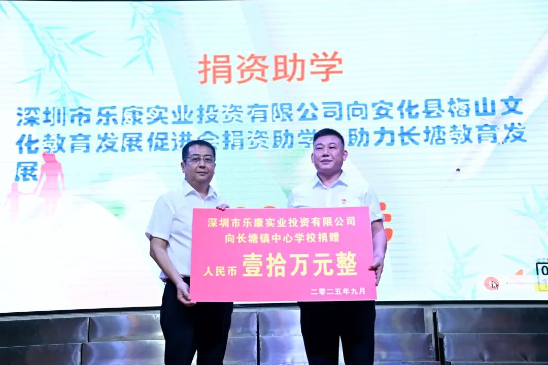 李德新曾在长塘镇就读,毕业后到深圳打拼。他始终不忘家乡恩、母校情,以实际行动助力家乡教育事业发展。2023年底,他发起成立安化县梅山文化教育促进会,带头捐款10万元,奖励优秀师生;2024年,捐赠30万元,帮助大荣学校修建运动场跑道;捐赠30万元,帮助克明学校修建人行天桥。作为市政协委员,李德新用心用情履职,在助推湘商回归中带头,建立了益阳乐康护理职业技术学校,同时主动代言家乡产品,发起举办益阳深圳农特产品推荐会。