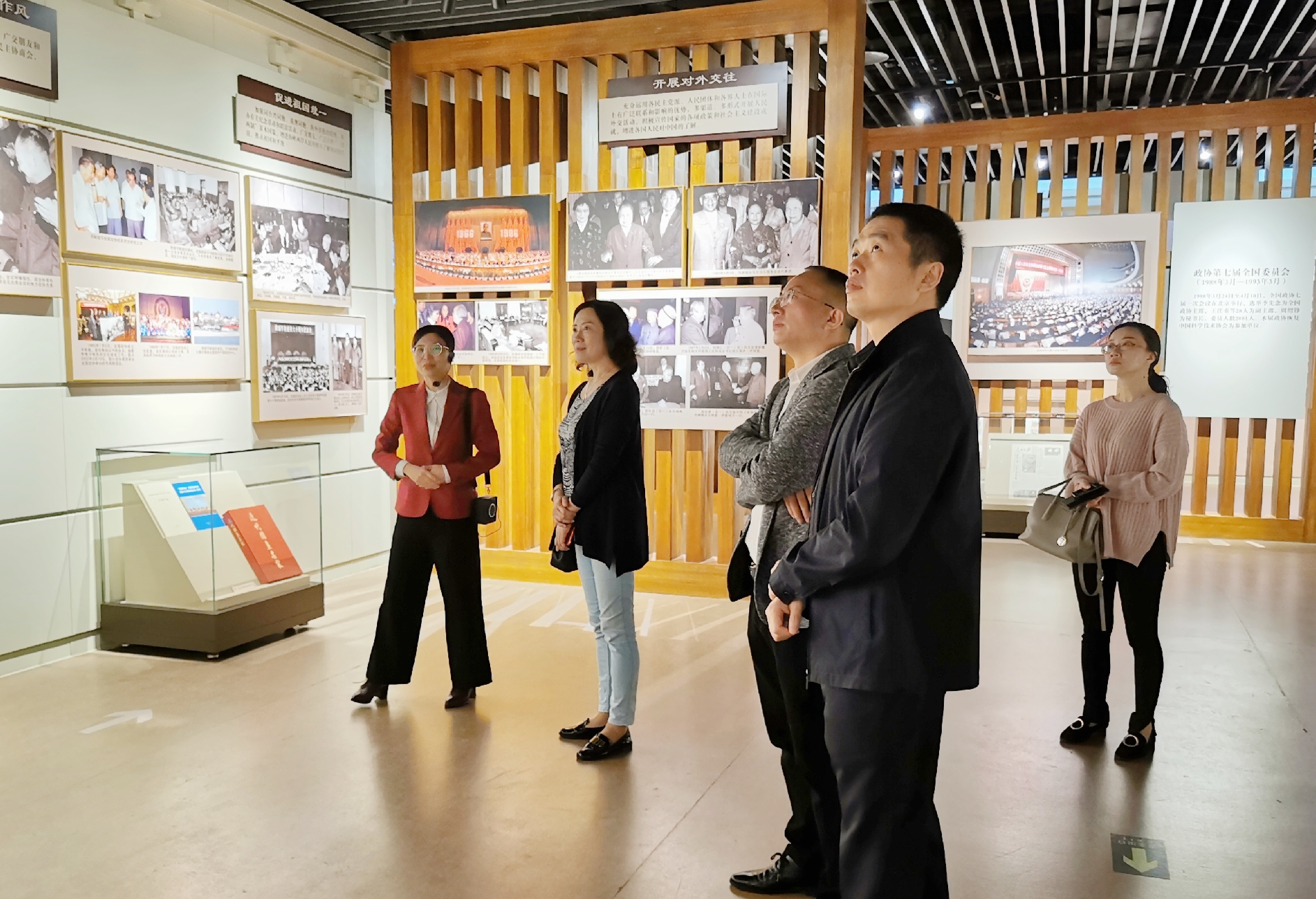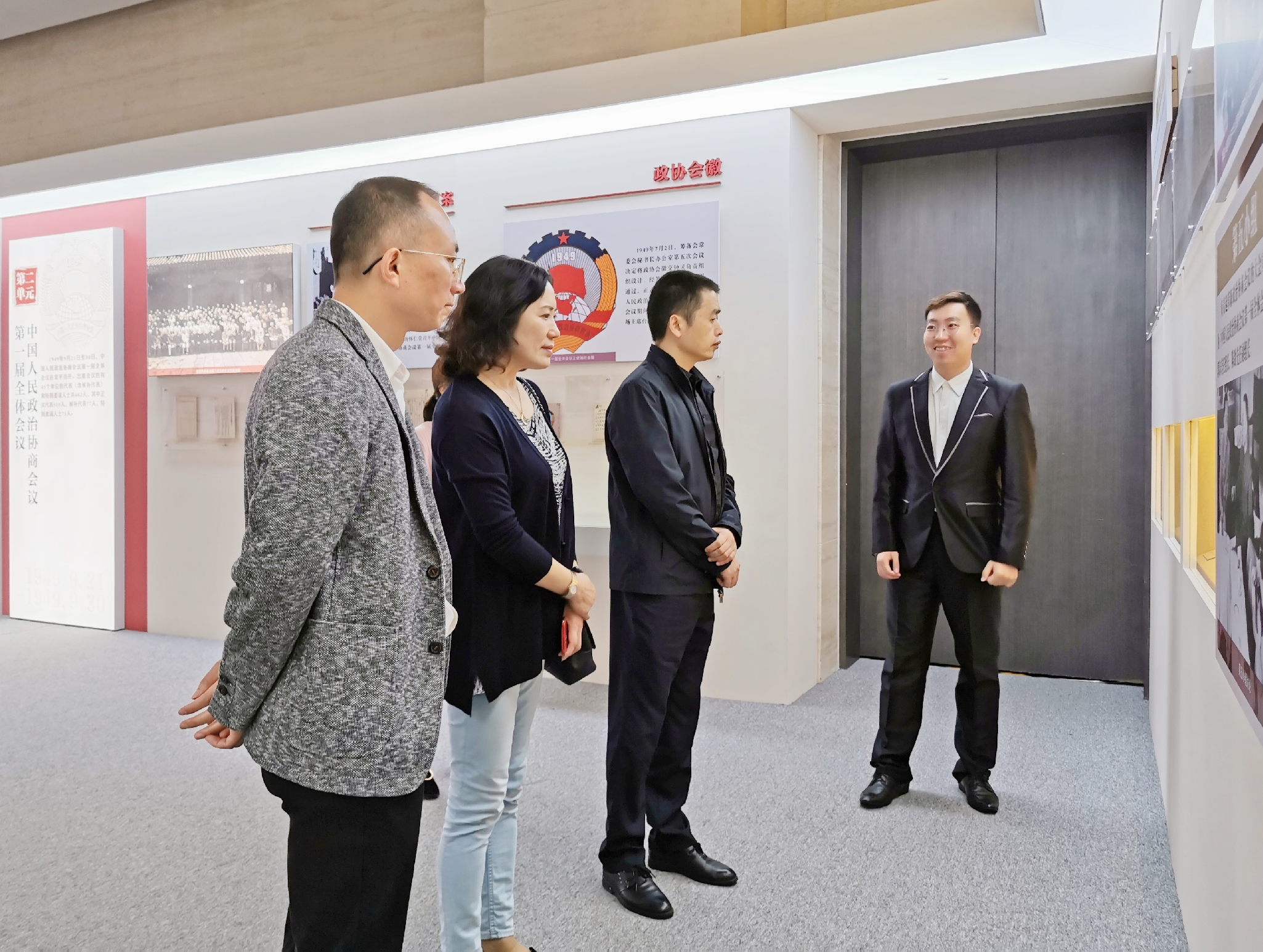 在全国政协机关,刘桦一行来到中国政协文史馆,参观了《档案实录——人民政协成立前后珍贵资料展》《人民政协光辉历程》两个主题展览,全面学习了解了人民政协的光辉历程和全国政协的先进履职经验做法。中国政协文史馆副馆长唐慧秋亲切接待了刘桦一行。唐慧秋副馆长热情地向考察组介绍了中国政协文史馆的筹建过程、展览特色及主要功能定位,并陪同参观了系列主题展览。通过讲解和实地参观,大家了解到全国政协文史馆是人民政协伟大历程和辉煌成就的重要展示阵地,是政协理论、政协文化和文史资料的研究园地,是人民政协与社会各界人士的交流平台。《档案实录——人民政协成立前后珍贵资料展》《人民政协光辉历程》两个主题展览真实展现了人民政协植根于社会主义革命和建设的伟大实践,融汇于实现中华民族伟大复兴的历史进程,全方位展示了人民政协70年的光辉发展历程。