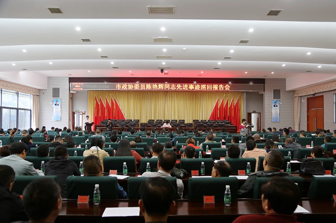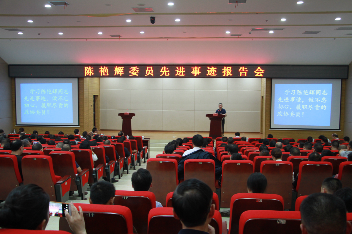 报告会上,由5名陈艳辉的同事、亲友组成的报告团,以朴实的语言、真挚的感情,从不同侧面深情讲述了他的感人事迹,再现了陈艳辉作为一名基层干部、政协委员、扶贫队长的忠诚与担当。