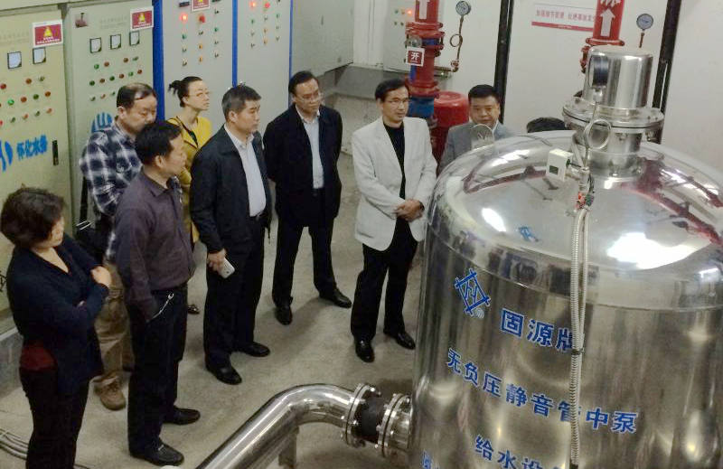 调研组一行视察怀化市金时花园小区二次供水机泵房