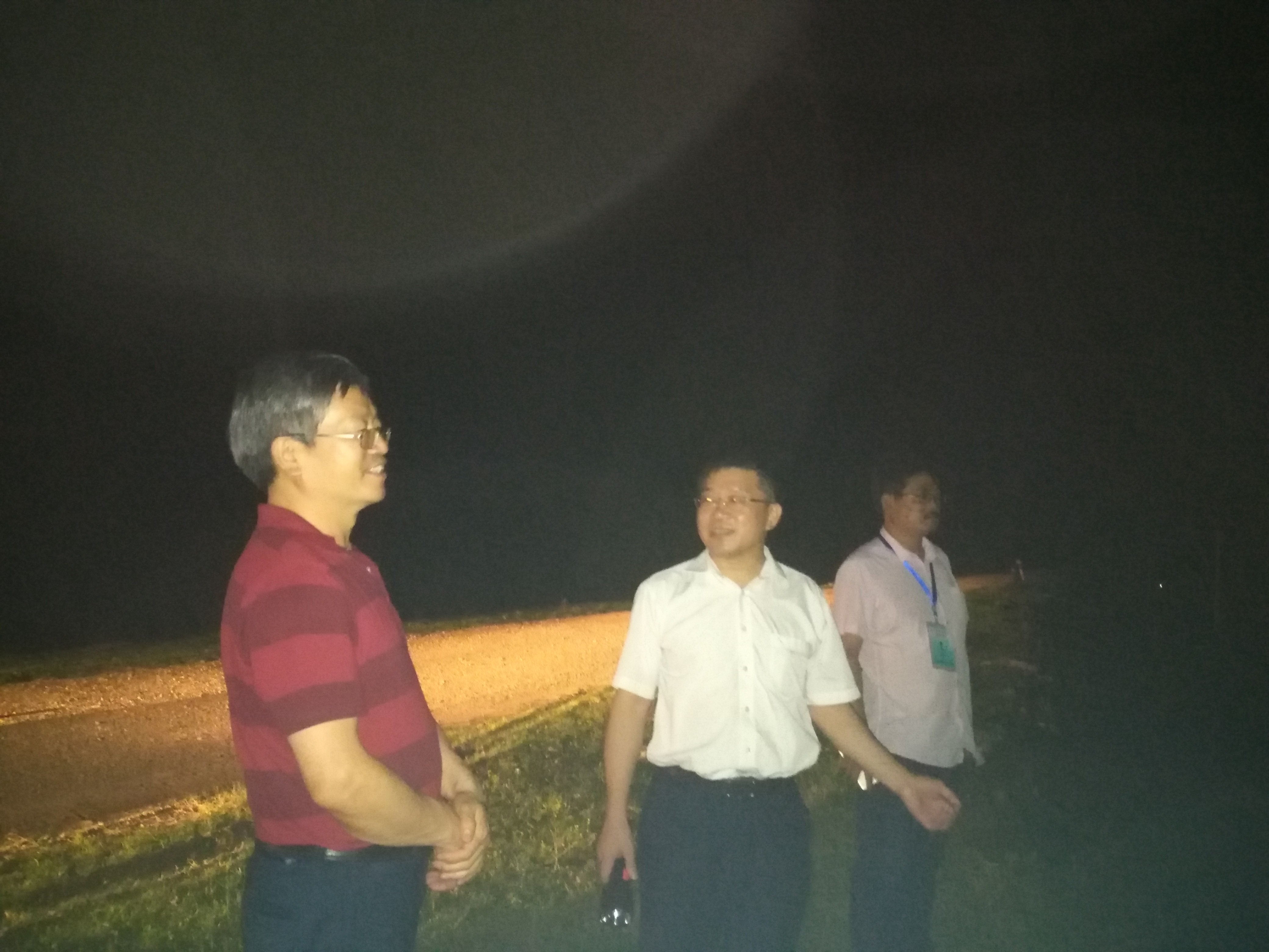 黄仲书首先来到草尾镇胜天村大堤,远远地看到堤脚闪烁着两处星点亮光。他示意停车,走至堤下,向正在巡堤查险的两名巡堤人员表示亲切慰问后,他详细询问道:“什么时侯交的班?负责的堤段有多长?有没有发现散浸、沙眼情况?体力上是否吃得消?”,两名夜间巡堤人员一一作了回答。当他了解到每个中队以两人一组三班倒或是三人一组两班倒等形式安排夜间巡逻、每个小组都安排了一名经验丰富的人员时,对此表示了充分肯定,同时指出夜间巡逻很辛苦,但责任重于泰山,出不得半点闪失,巡堤查险一定要做到“心到、脚到、眼到”,坚决把隐患消除在萌芽状态。