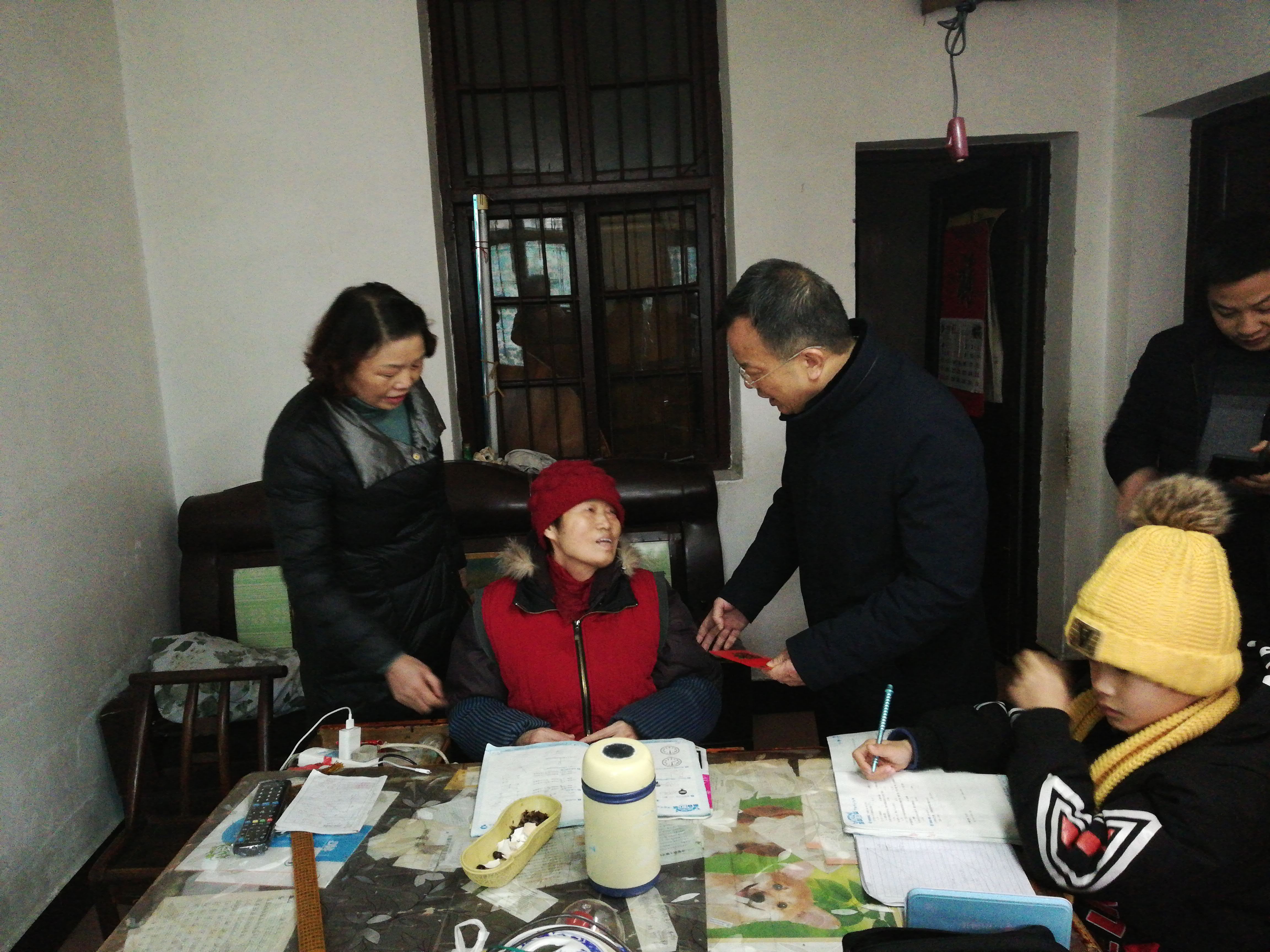 胡捷副主席嘱咐患病对象的家人好好照顾他们,同时希望困难群众坚定信心,积极努力,争取来年生活能够迈上新的台阶。