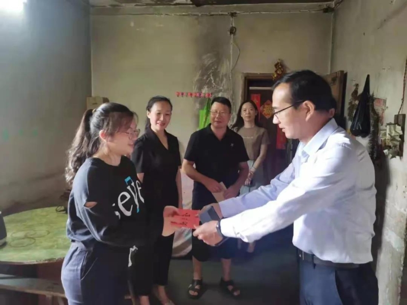 在电机厂家属区,卜铁洪看望慰问今年考上大学的贫国学子蔡鹦骞。走进蔡家,空荡荡的房间里,只有一张褪了色的餐桌,两条长凳,两张床,除此之外最显眼的就是墙上贴满了的荣誉奖状。卜铁洪亲切询问蔡鹦骞的学习生活情况,听到社区工作人员介绍,蔡同学不仅努力学习,在及其简陋的条件下用优异的成绩成功考上本科一类大学。生活中更是乐观开朗,经常主动随社区干部和志愿者一起参加志愿服务、文艺汇演等集体活动,为社区居民贡献力量。卜铁洪十分感动,除了向蔡鹦骞颁发江家坪社区委员工作室筹集的助学金外,还当场与市政协委员郭安邦分别自掏腰包拿出一千元资助她。
